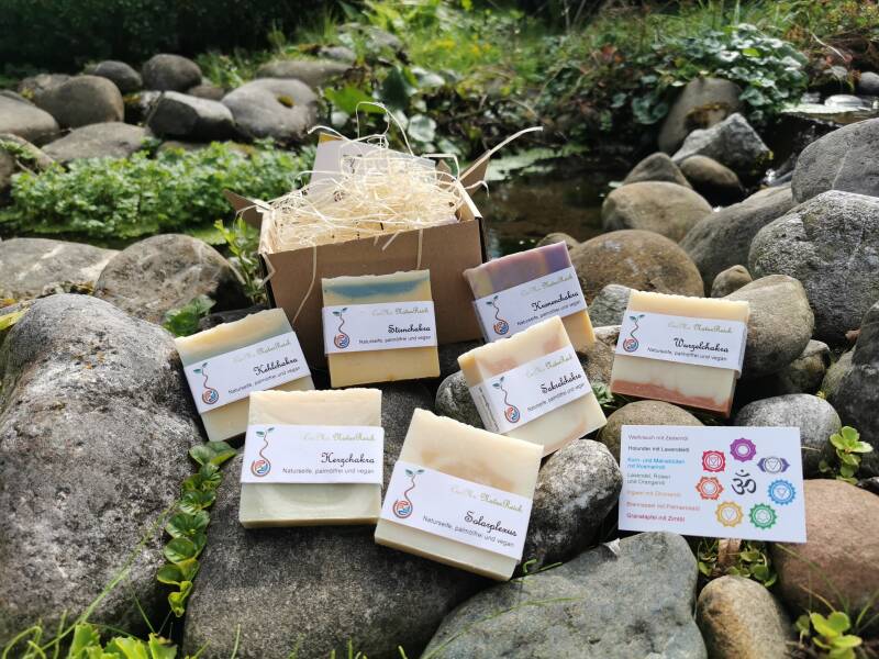 Im erwähnten Chakren Set sind die beigefügten ätherischen Öle jedoch von großer Bedeutung. Alle in der betreffenden Seife verwendeten Pflanzen und das entsprechende ätherische Öl sind miteinander auf das Chakra und dessen Heilung abgestimmt.